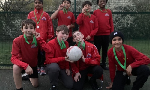 On Monday 16th March, we took sixteen boys, two teams, to participate in this year's district boys' netball rally, which was held at Ryefield School. Despite the cold conditions, our teams were full of enthusiasm and energy, and they applied themselves fully in all of their group phase matches of this competition. Their amazing teamwork and skill in each of their games was wonderful to watch. Unfortunately, only Team A progressed to the semi-final stage of the competition. They were drawn against St Bernadette's and this was a tough match that went to extra time. We won this match 2-1 and progressed to the final, where we played Heathrow A. This was a very challenging match, but the team played exceptionally well. We lost this final but the team came away with silver medals. Thank you to all the family members who came along to support our team!